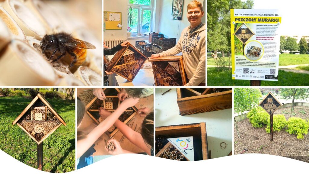W ramach realizacji projektu z Budżetu Obywatelskiego, postawiliśmy na terenie Łódzkich Parków i skwerów 220 autorskich domków dla dzikich zapylaczy. Domki zasiedlone zostały kokonami murarki ogrodowej, którą można oglądać na żywo w okresie kwietnia i maja, kiedy to pszczoły wylęgają się z kokonów i zasiedlają znajdujące się w domach otwory. Złożone przez nie jaja, wykluwają się, powstają larwy a następnie poczwarki, które czekają aż do kolejnej wiosny, aby wygryźć się z otworów. Pszczoły żywią się roślinami, które kwitną w tym okresie. Użytkowo, pszczoły murarki hodowane są przez sadowników, gdyż cechują się o wiele większą skutecznością zapylania roślin owocujących niż pszczoła miodna.